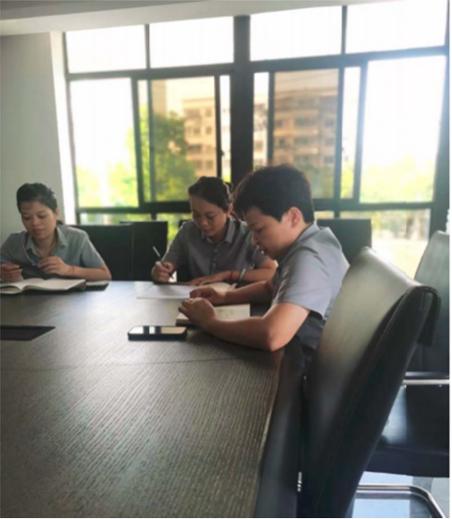 說我們應該不安于現狀,打開視野和格局,提升自己的學習能力。云靜說公司在進步,我們要學習才不會被公司淘汰。仁琴說質量是企業的生命,們要產品質量。愛霞說我們要活到老學到老,積極參加學習。遠英說學讓她學會冷靜,讓自己更適應團隊的工作。王凡說企業讓我們共同進步,我們學會感恩。麗君說不停止學習才能讓自己成為企業不可替代的那個人。培紅組長說領的情緒關乎團隊的熱情,領導也要學習變得更好。